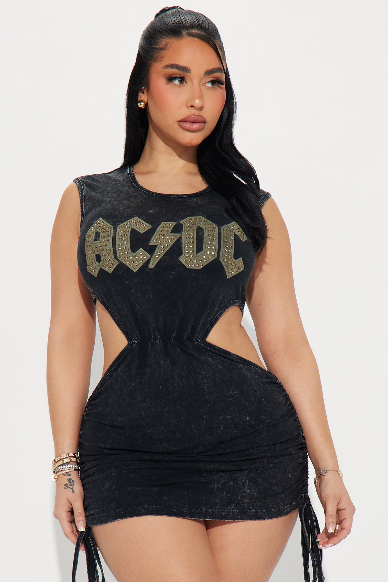 ACDC Rhinestone Cut Out Mini Dress - Black Wash