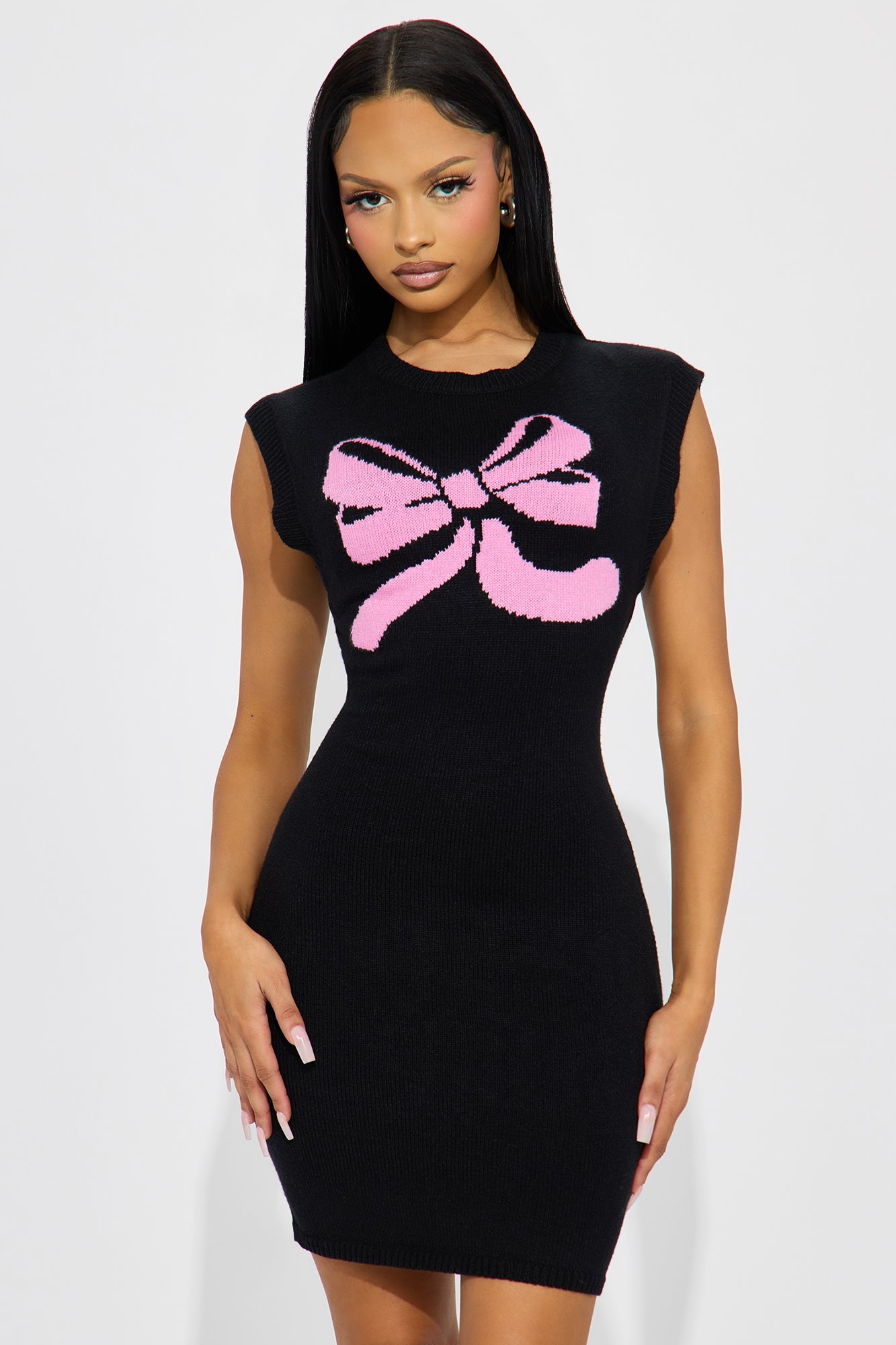 Bow Belle Sweater Mini Dress - Black