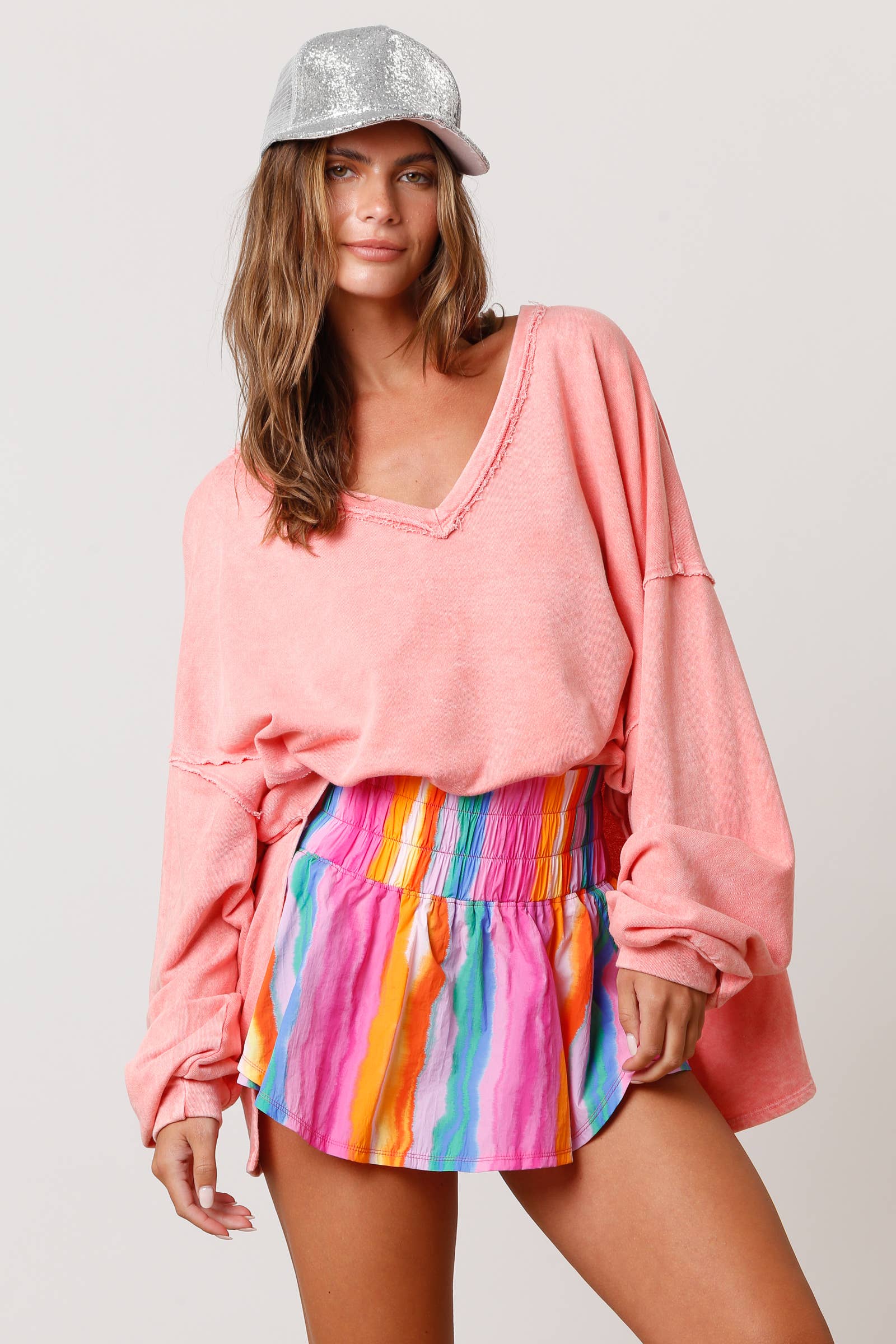 Brushed Print Sporty Skort - Multicolor streaks pattern print - Smocked elastic waist - Double layer 100% Nylon Made in China