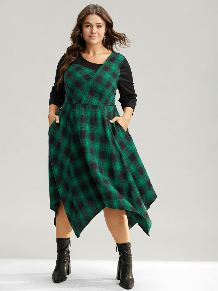 Christmas Plaid Asymmetrical Patchwork Hanky Hem Dress