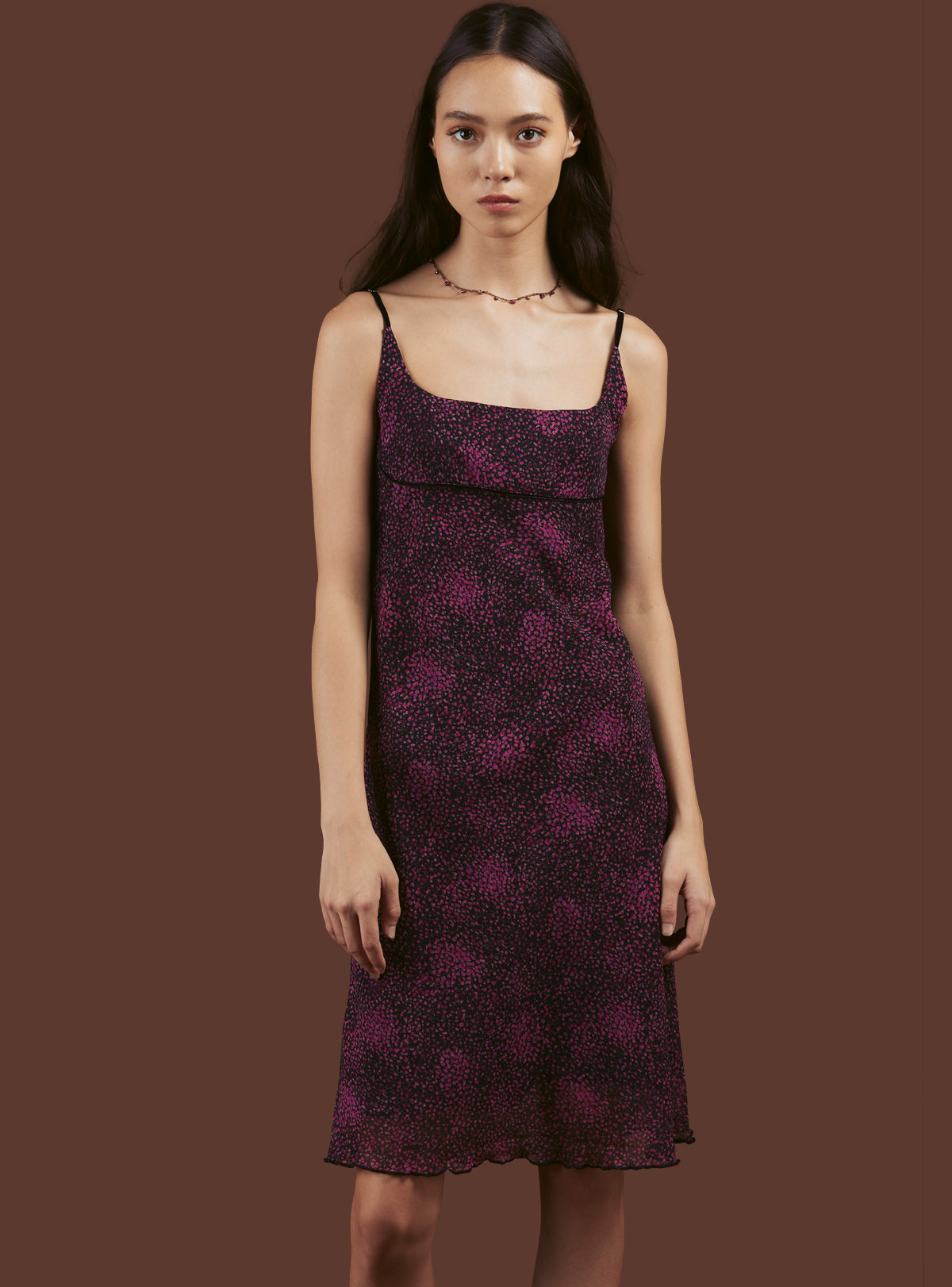 Adorable dress with velvet piping details below the bust, adjustable shoulder straps and a bias cut at the bottom.