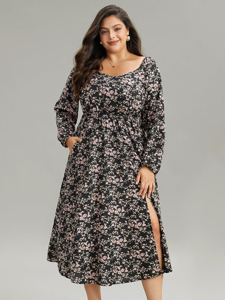 Ditsy Floral Pocket Plicated Detail Split Side Dress