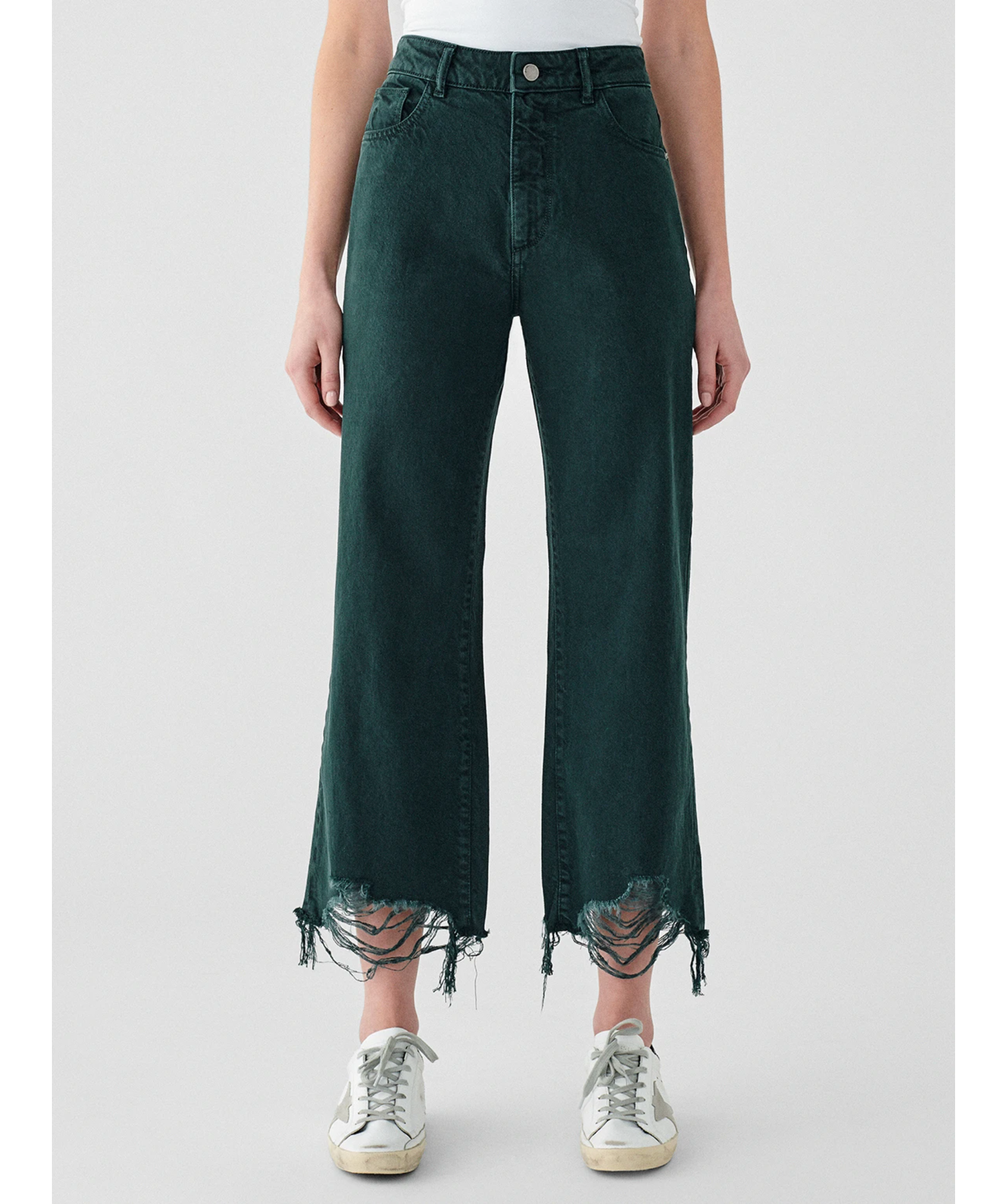 DL1961 HEPBURN GREEN HIGH RISE WIDE LEG DISTRESSED HEM JEANS W26