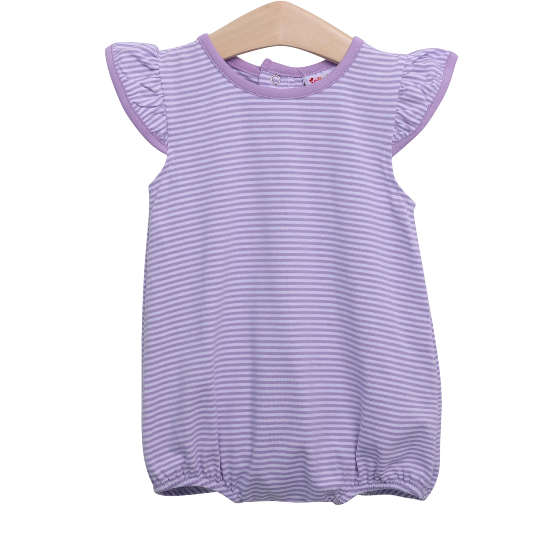 Get back to basics in the Striped Flutter Sleeve Bubble. As comfy as it is cute, it's light, bright, and perfect for Spring. Ready to wear as is or great for personalization. Material: Knit. 95% Cotton 5% Spandex. Fits true to size.