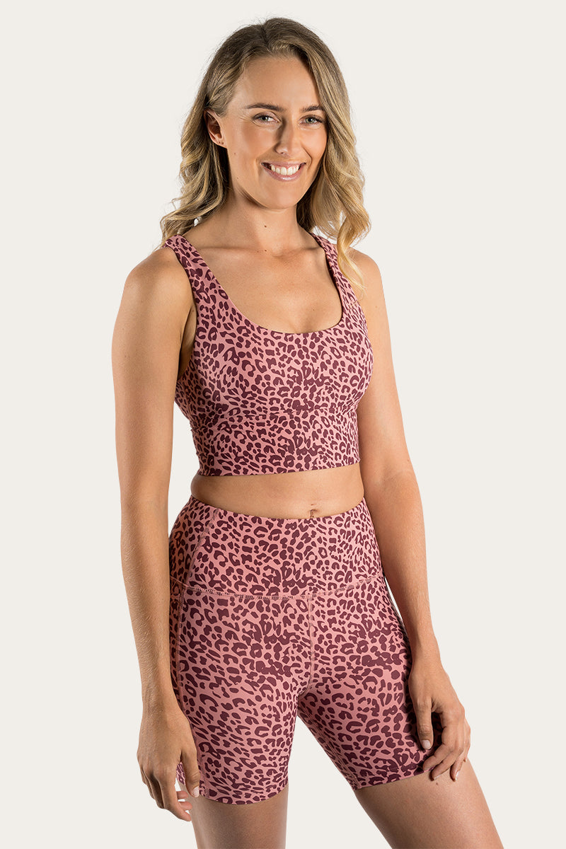 Harlow Womens Long Sports Bra - Cheetah Cabernet