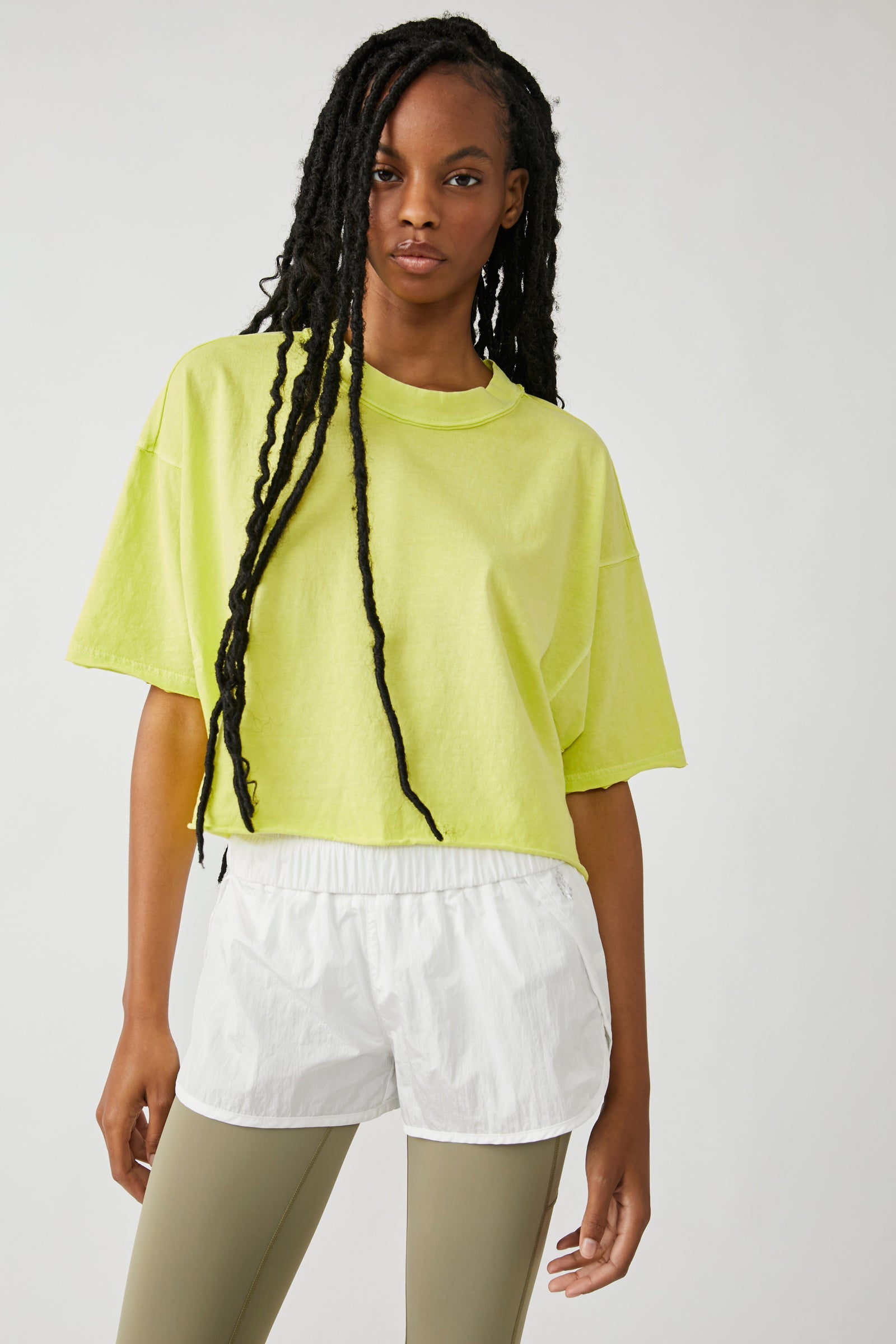 Warm up or cool down with this essential tee, featured in an oversized boxy fit and cropped design with raw-edge seaming throughout for a lived-in look.