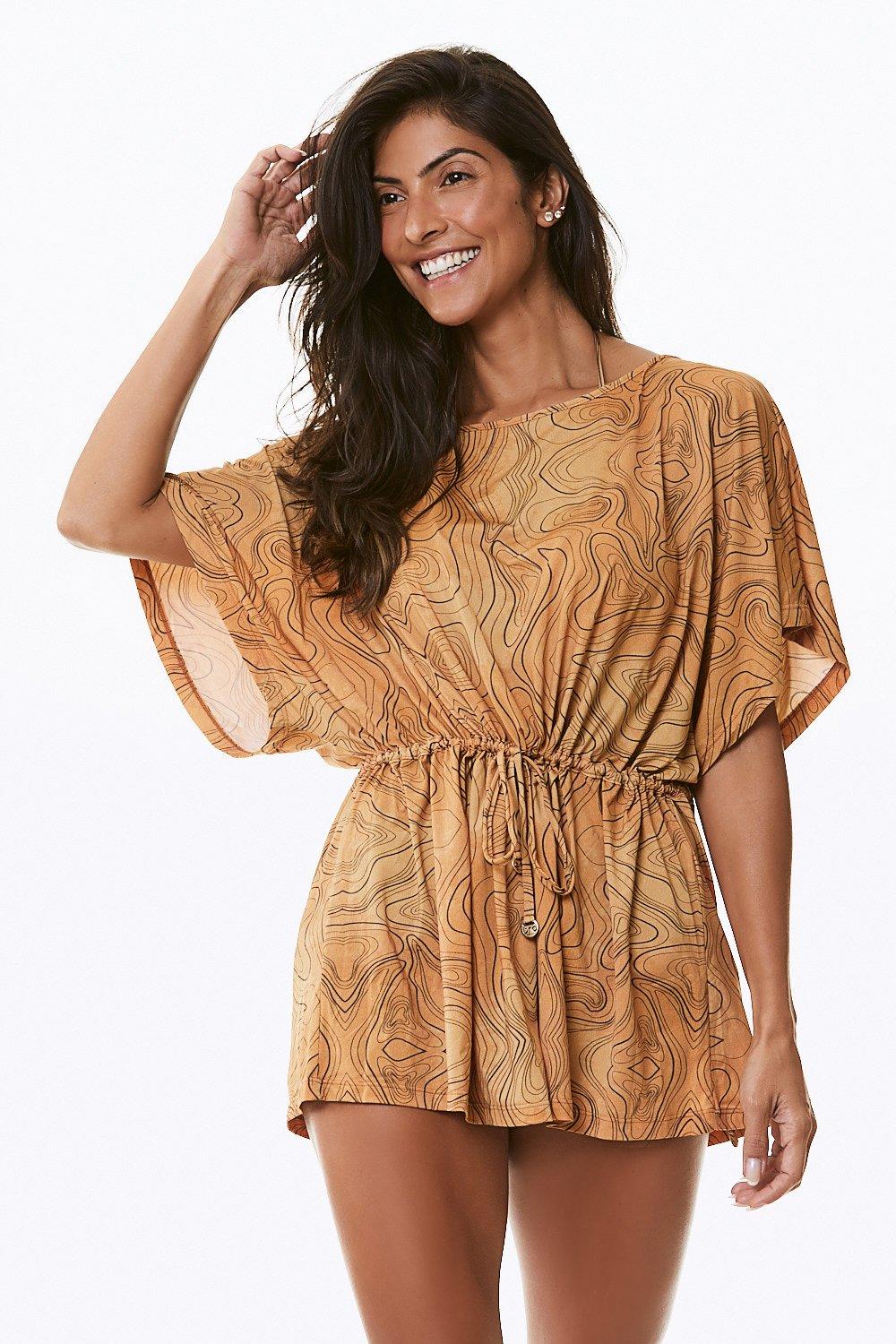 Inspired by Rio De Janeiro native and beautiful pop star Anitta, this stylish mini cover-up is a poolside essential. Our Itapua cover-up features a drawstring to adjust to the desired fit and accentuate the waist. The fabulous nude color with swirls of black designs makes this cover-up a fantastic piece to match any of our Rio collection bathing suits. The excellent loose fit will keep you cool and covered while you take a break from the water and relax at the poolside bar lounge.
