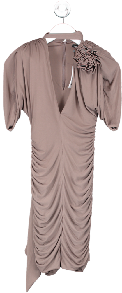 Karen Millen Brown Drape Jersey Rosette Mini Dress UK XS