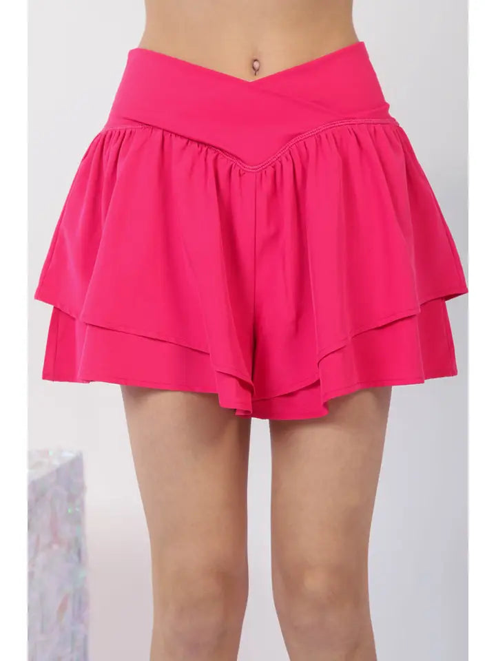 - These Kenzie Athletic Shorts are the perfect blend of sporty and flirty, with a V-shaped waist and a double layer that adds a touch of flare. Don't be afraid to show off your girly side with these fun and playful shorts!