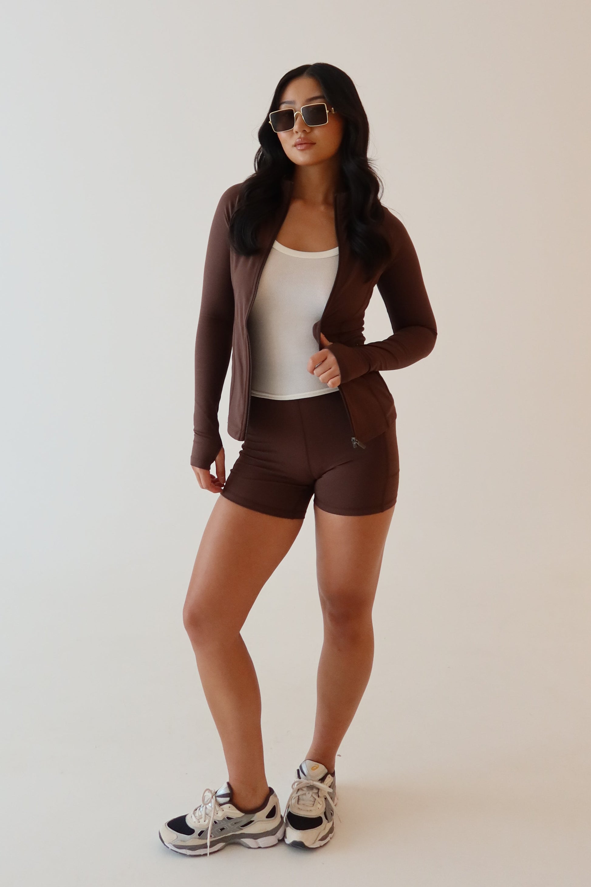 We designed our LUNA Zip Up Jacket to bring new meaning to the word ‘streamlined’. Crafted from our buttery soft FLEXI Butter fabrication, Luna incorporates full-length sleeves with thumbholes, a bodycon fit, centre front zip closure, and functional front pockets. Our signature MESHKI logo detailing is subtle but statement-making and we know this will become an essential part of your casual look. Complete the statement with your favourite look from our MESHKI Athleisure range for the perfect body-loving look.