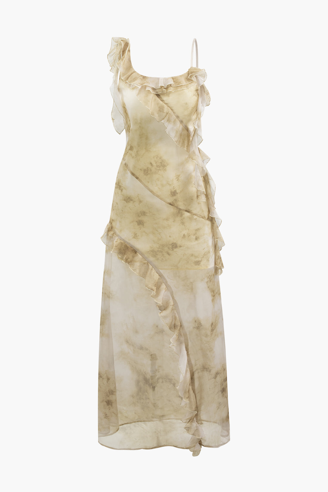 Tie Dye Asymmetric Ruffle Maxi Dress
