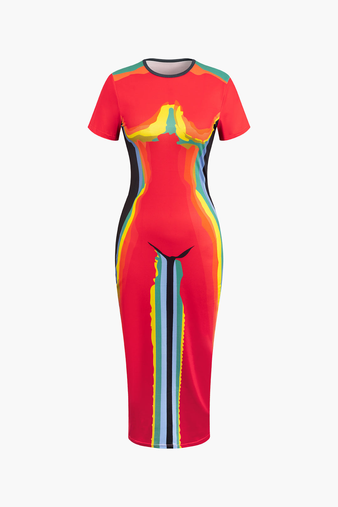 Round Neck Short Sleeve Body Print Midi Dress