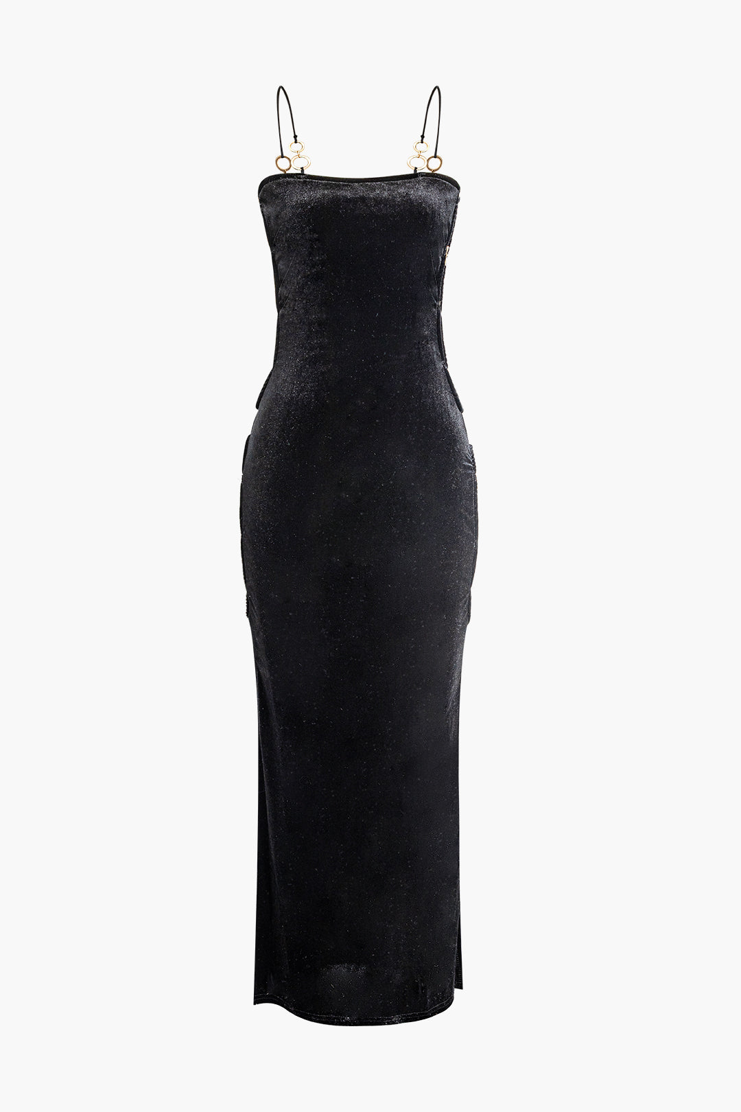 Velvet O-Ring Side Cut Out Slit Maxi Dress
