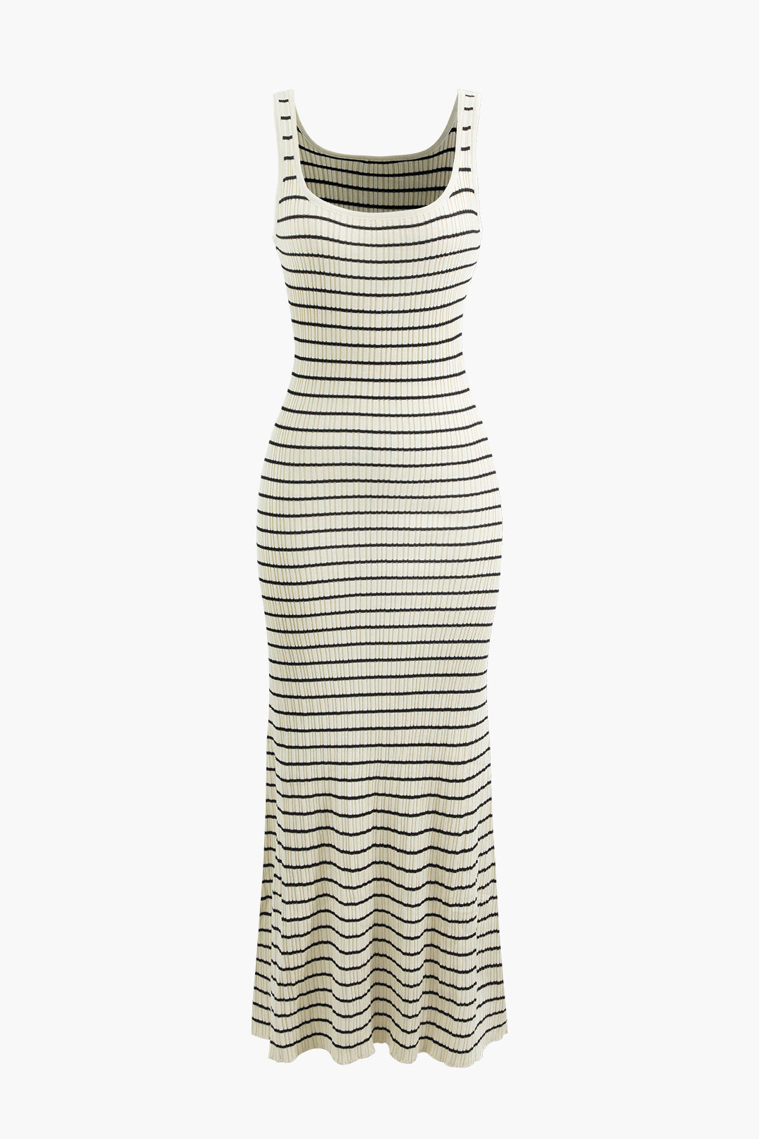 Stripe Square Neck Rib Knit Midi Dress