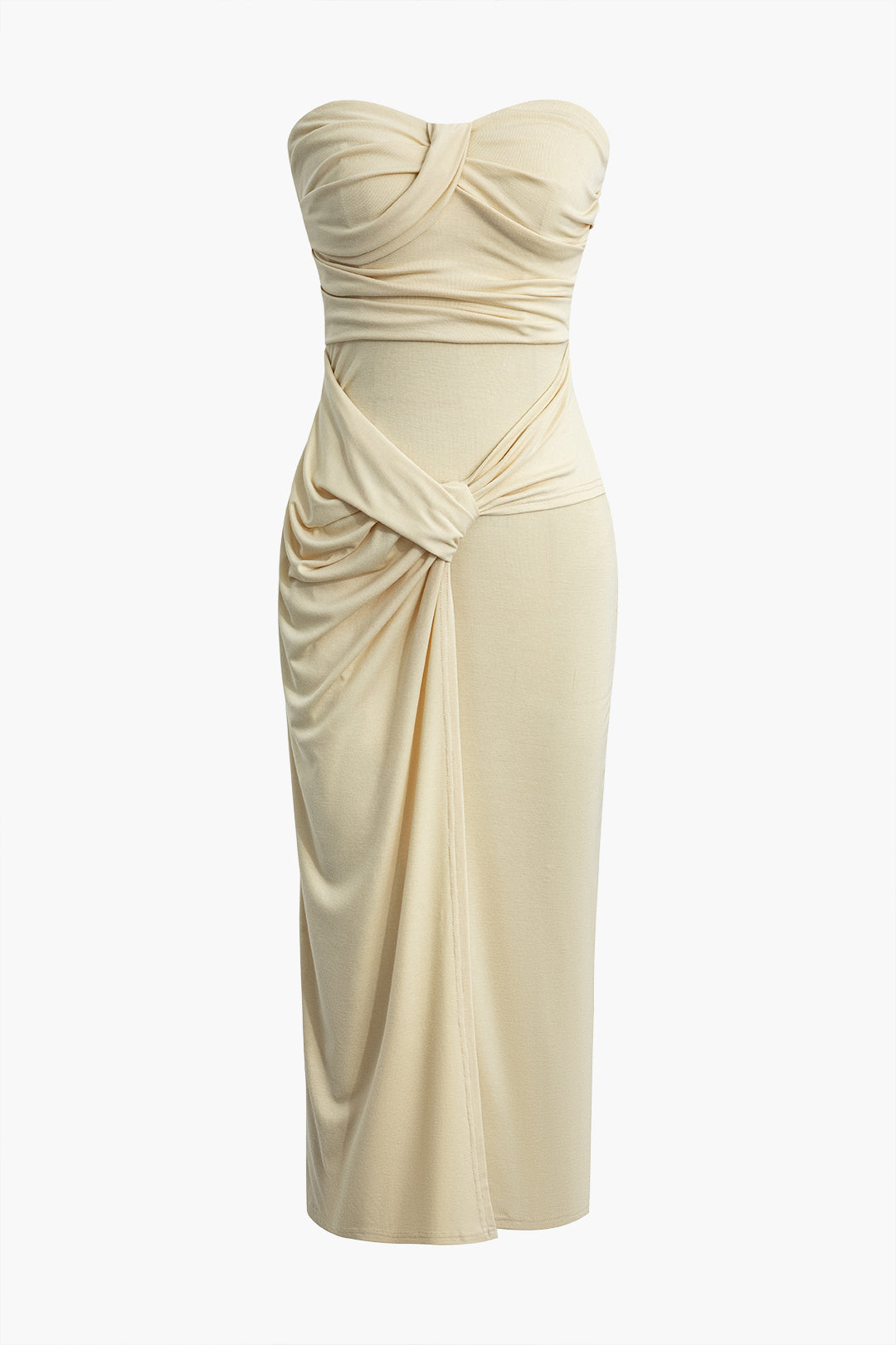 Solid Ruched Strapless Midi Dress