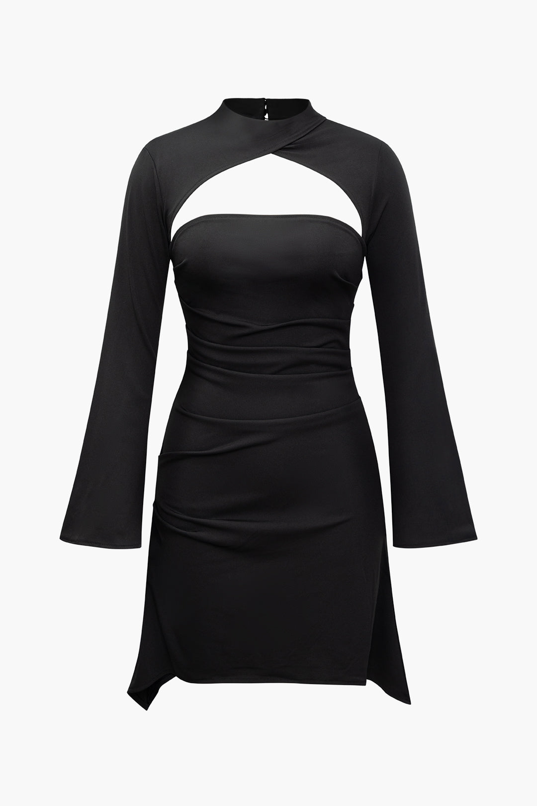Cut Out Ruched Bell Sleeve Mini Dress