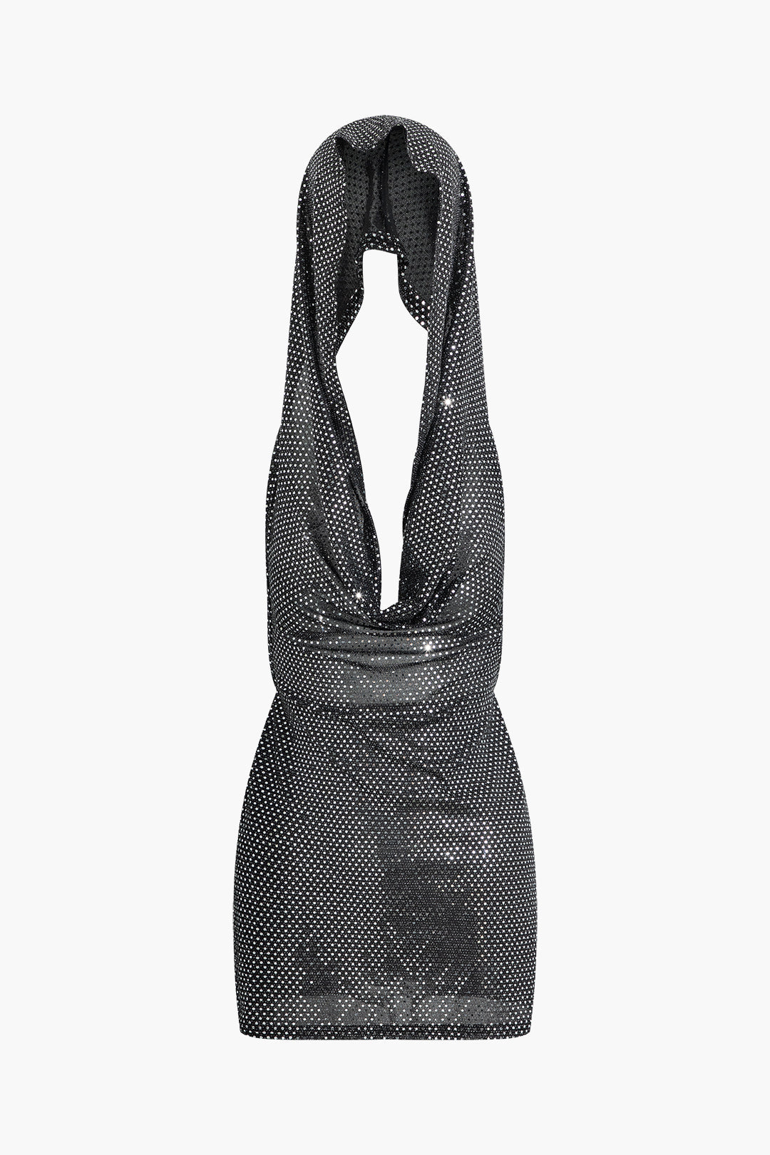 Sequin Hooded Cowl Neck Backless Mini Dress
