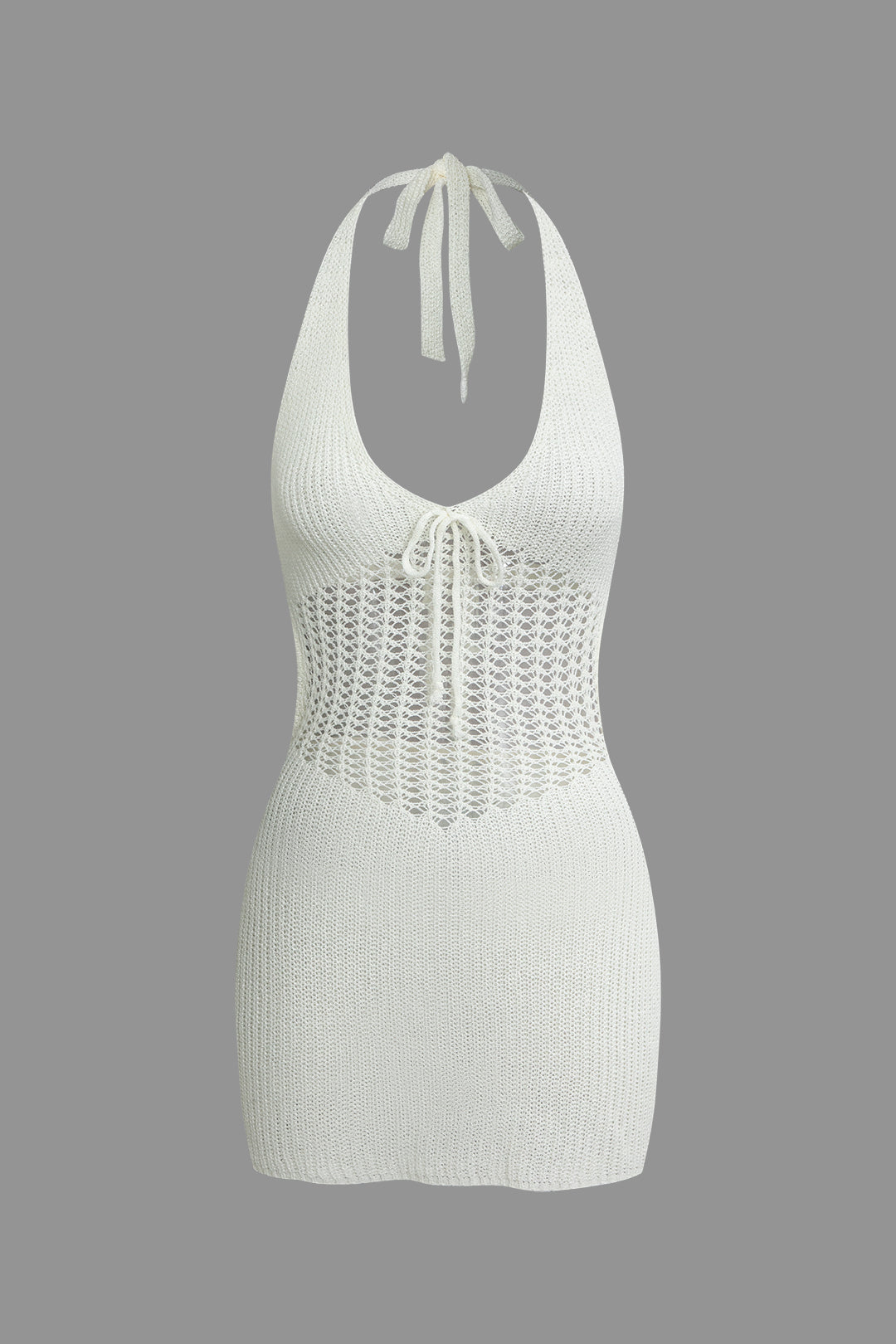 Halter Crochet Waist Backless Knit Mini Dress