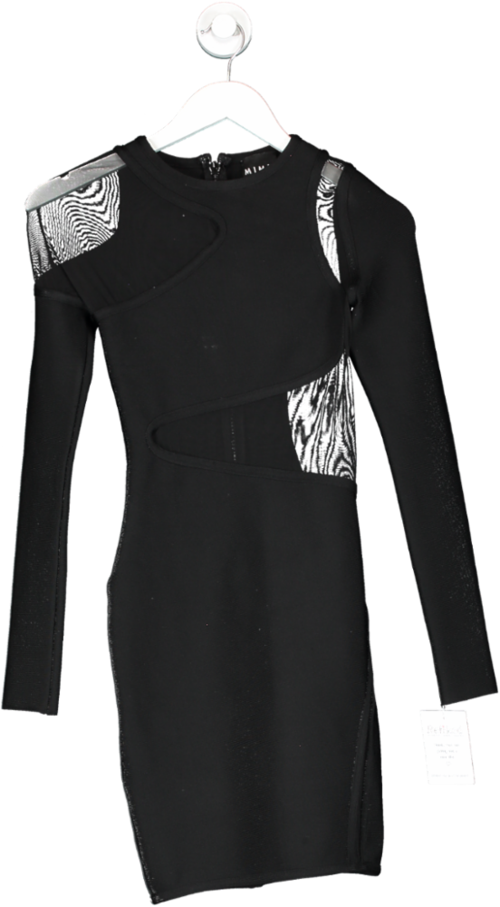Mimii London Black Long Sleeve Mesh Panelled Mini Dress UK XS