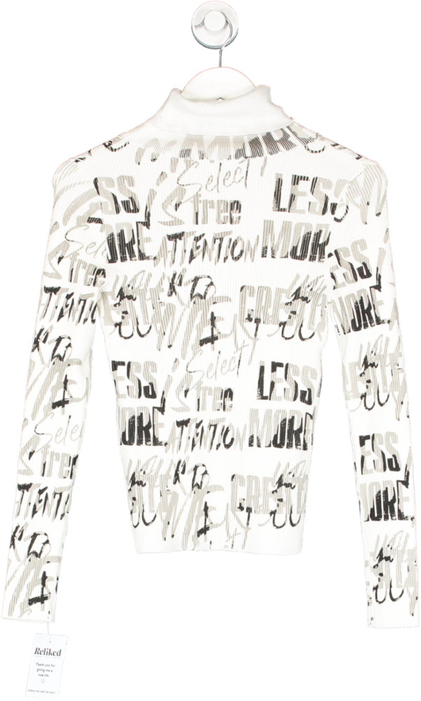S.DEER White All-over Letter Slim Fit Sweater UK S