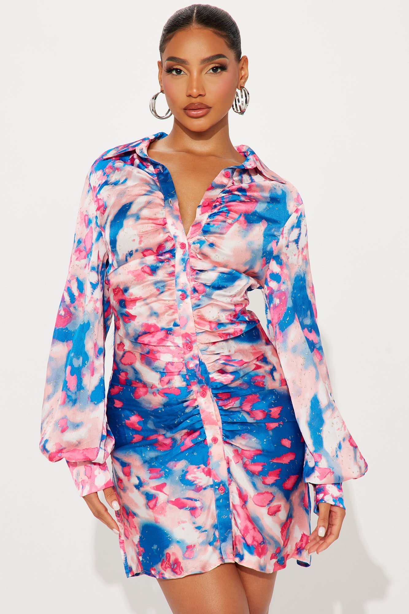 Santorini Satin Glitter Mini Dress - Pink/combo