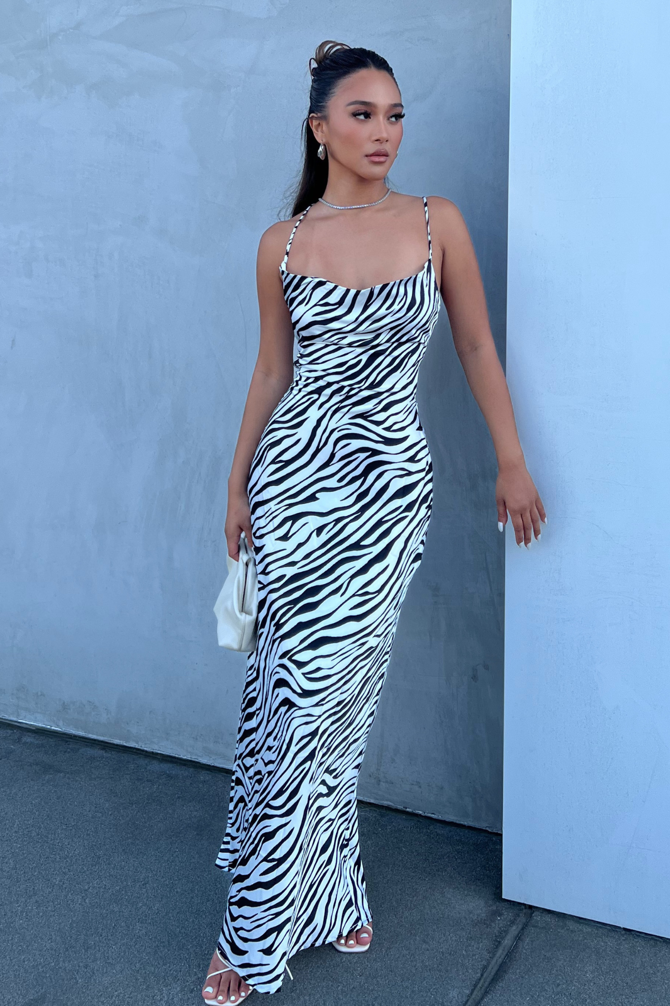 Our new Sierra Maxi is sure to be your next fave formal dress featuring a gorgeous A-line fit with a flowy bottom, double lined material, a cowl neckline, a side zipper and thin shoulder straps that continue to the back forming a backless criss cross design. Style her up with Black heels and delicate silver jewellery to be the centre of attention at your next formal event.