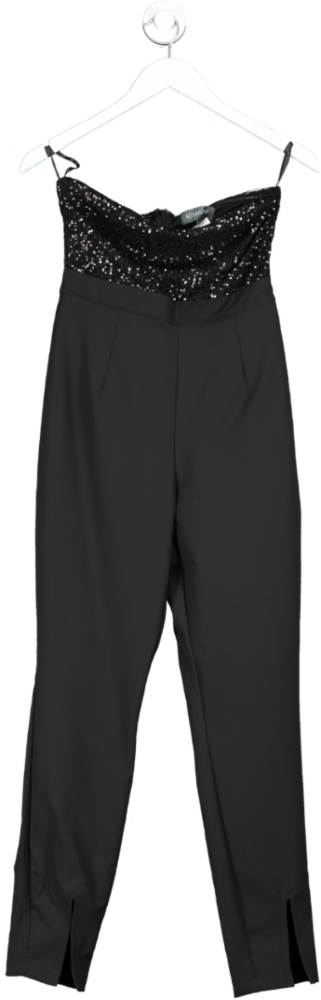 SOSANDAR Black Sequin Top Tapered Leg Split Hem Jumpsuit UK 6