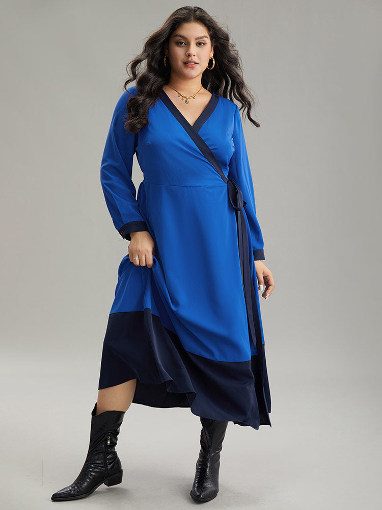 Static-Free Two Tone Wrap Ties Pocket Dress