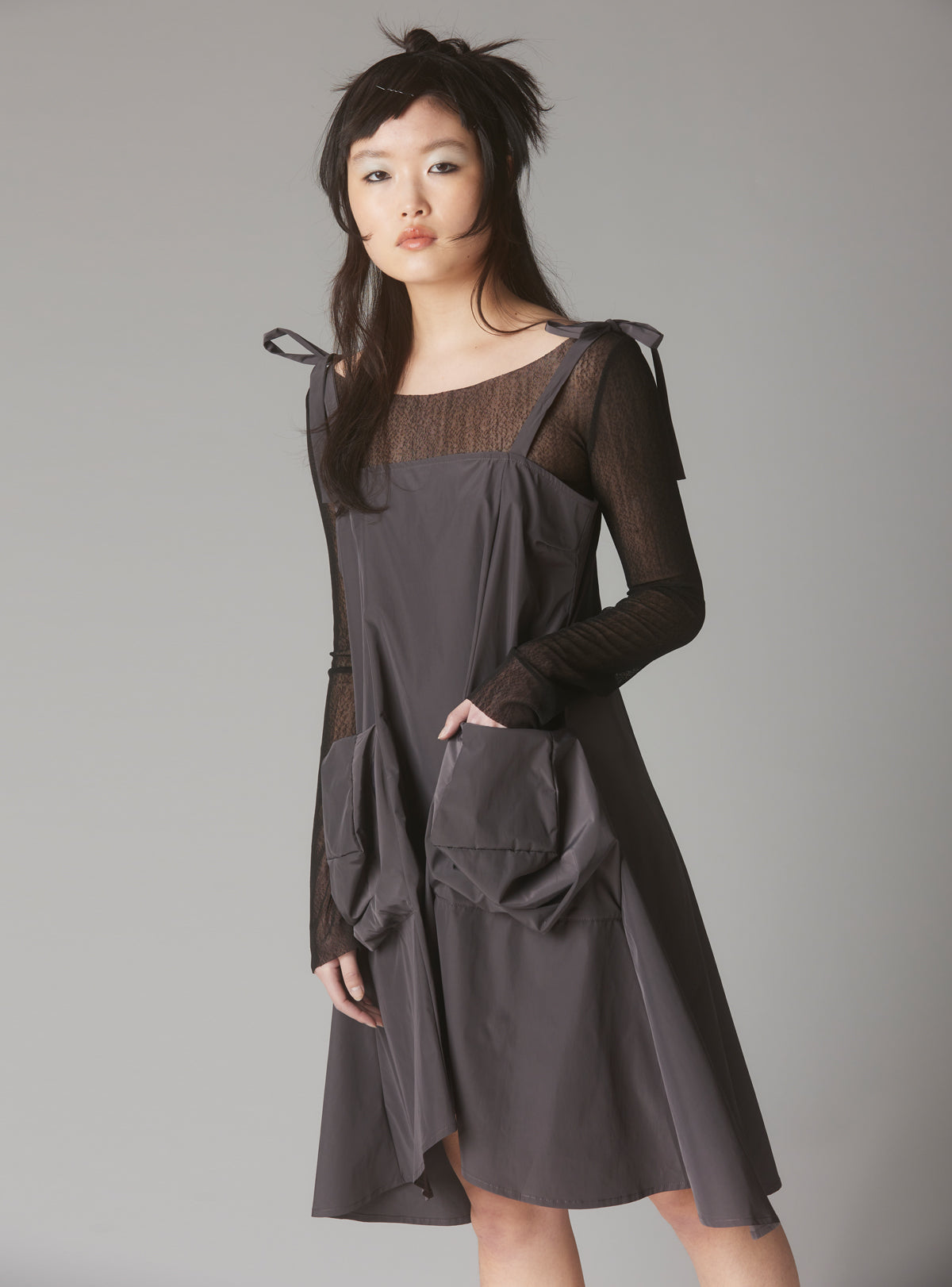 The Syx is an a-line knee-length dress with oversized front patch pockets and adjustable tie shoulder straps. Features a zipper on the back. Flowy fit and feel that runs true to size.