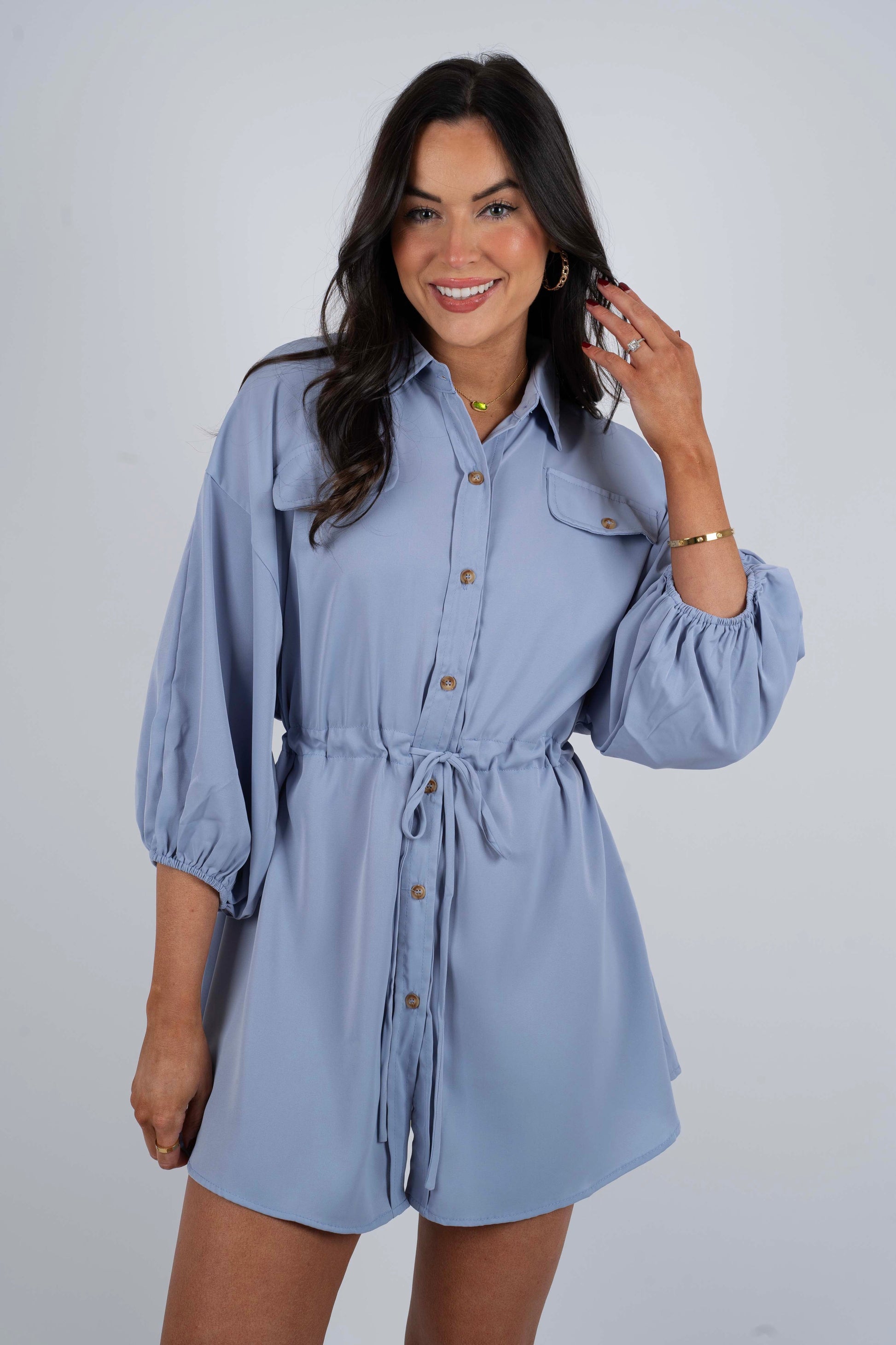 This gorgeous Taylor's Love Story dress will give you serious style points. Cut from a lightweight blue fabric with a tie waist and long sleeves, this button-down collar dress is both timeless and modern. Look and feel your best!