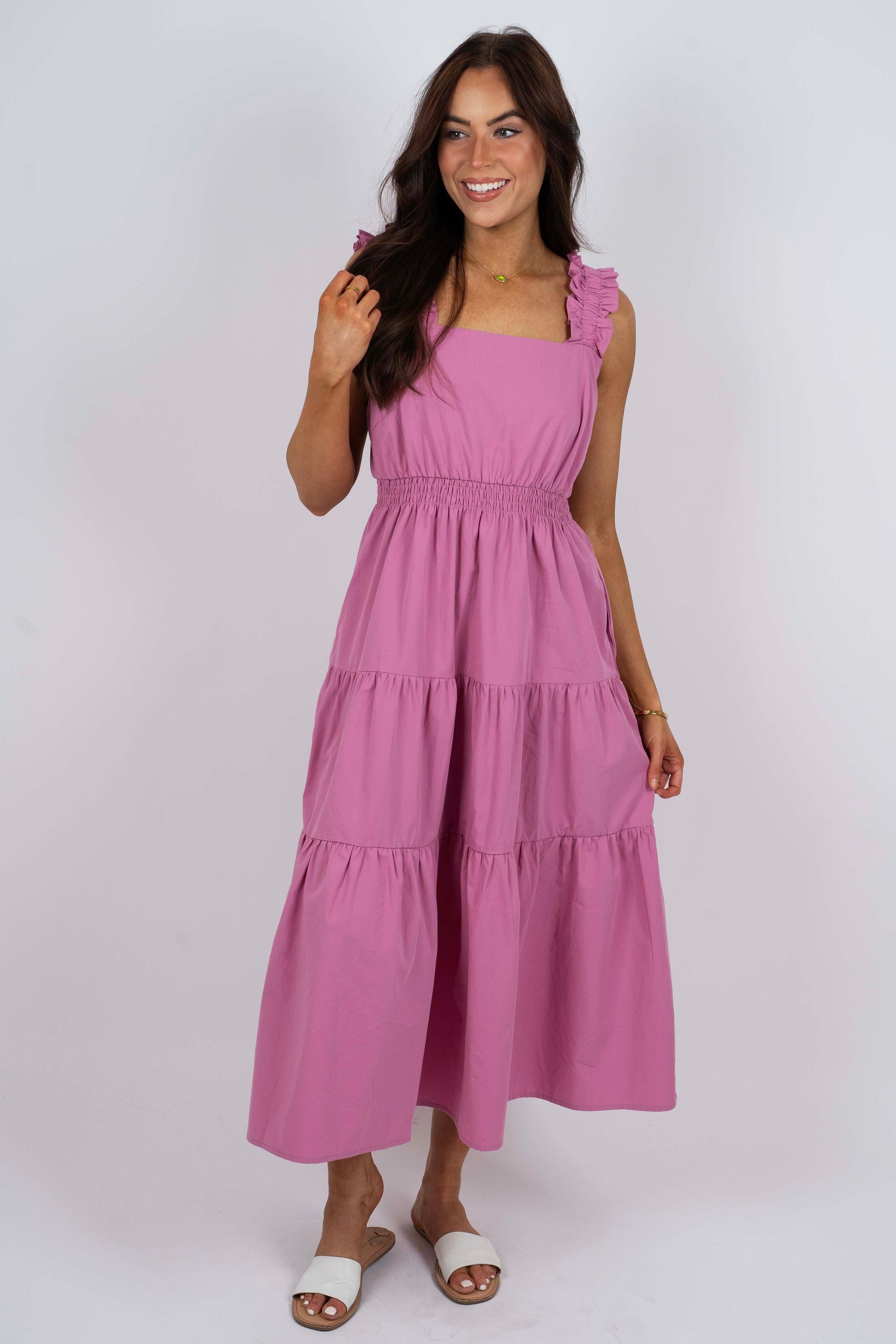 Turn heads in the Tiffany Midi Dress! With a playful tiered design, this dress flatters any figure. The elastic straps and waist ensure a comfortable fit, while the square neckline adds a unique touch. Perfect for any occasion!