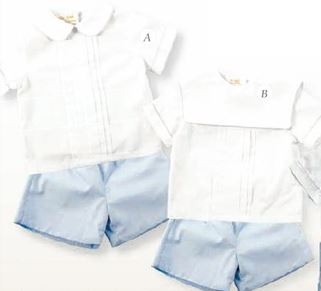 White and Blue 2 pc Short Set with Square Collar